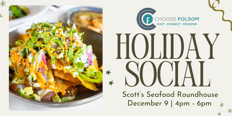 Let’s wrap up the year together in good cheer! Join us for a festive evening of connection and celebration with your fellow Choose Folsom partners. Enjoy great company, lively conversation, and a toast to another amazing year of partnership, collaboration, and community success. 📅 Tuesday, December 9 Raise a glass, share some laughs, and celebrate all that we’ve accomplished together this year! This event is open to current Choose Folsom partners — please register in advance to reserve your spot. Appetizers and light bites will be provided.CHAMBER: Choose Folsom Holiday Social
