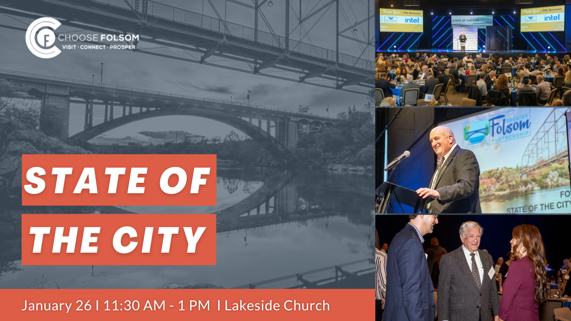 The Chamber's Annual State of the City luncheon is the official launch of the business year. Please join us to hear newly appointed Mayor, Rosario Rodriguez's State of the City Address and see how our amazing city has continued to THRIVE! #folsomstrongertogetherAdditional Info