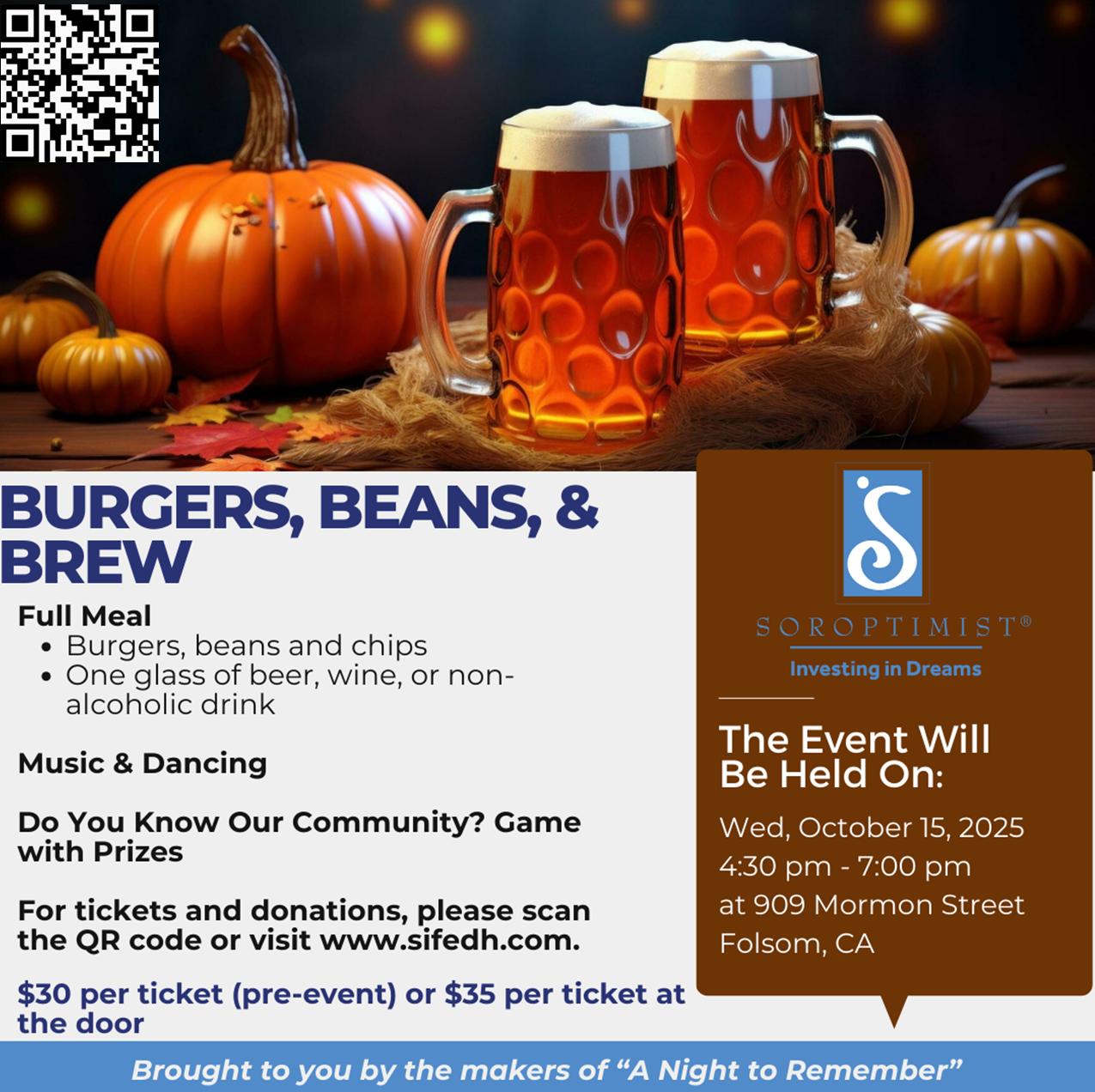 GET YOUR TIX FOR LESS WITH PRE-SALE NOW !! MUSIC, DOOR PRIZE & RAFFLES. HOW WELL DO YOU KNOW OUR COMMUNITY GAME...PRIZES. Meet women in the community making a difference. Come & see how you can be a part of our community. www.sifedh.org RAFFLE DONATIONS ACCEPTED TO HELP FUND LOCAL EDUCATIONAL GRANTS. $30 includes full meal & either ONE beer, glass of wine OR non-alcoholic drinks. Add'l drinks are $ donation. MEAL IS FREE IF YOUR BIRTHDAY IS THE WEEK OF OCTOBER 12th !! 909 MORMON ST. INSIDE & OUTSIDE REAR PATIOWOMEN HELPING WOMEN - Soroptimist