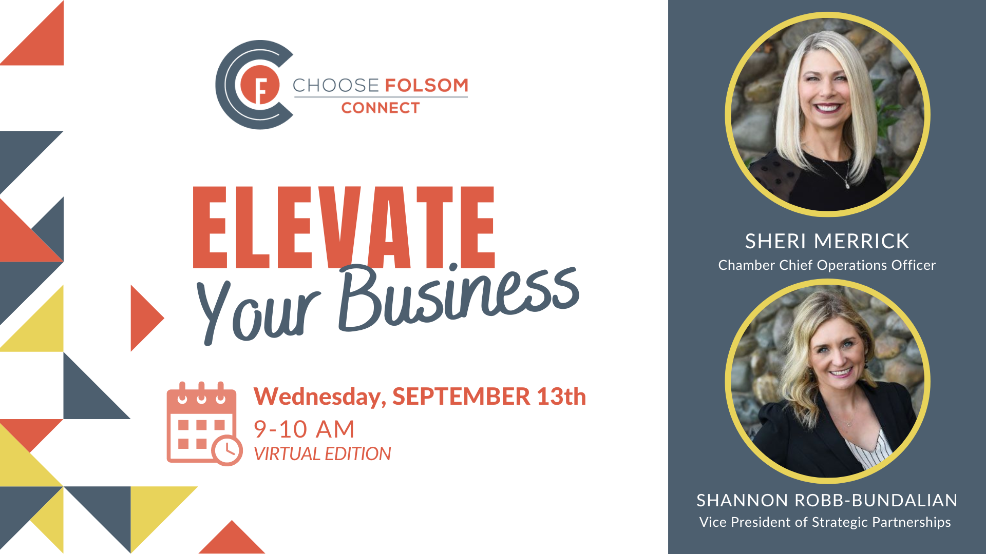 Please join us for this in depth discussion of all the benefits that are available to businesses that partner with Choose Folsom and the Folsom Chamber of Commerce. We want to help you elevate your business and we have the perfect tools needed to do so! Be sure to register to receive the link for the virtual meeting. #ChooseFolsom #FolsomStrongerTogetherCHAMBER: Elevate Your Business Virtual Edition